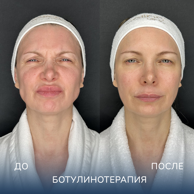 Ботулотоксин типа, А является быстрым, эффективным и безопасным оружием в борьбе с мимическими морщинами. Техника «живого лица» позволяет работать точно и деликатно: препарат расслабляет только отдельные мышцы лица, тем самым выравнивая морщины. После окончания действия препарата мышцы возвращаются в активное движение, а кожа при этом уже разглаженная, лицо выглядит свежим и отдохнувшим!